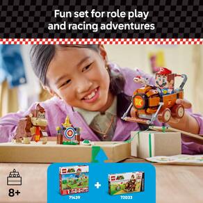 - Jogo digital interativo – Monte o DK Jumbo com LEGO Mario (71439), LEGO Luigi (71440) ou boneco LEGO Peach (71441) (figuras não incluídas) para acionar efeitos sonoros e visuais do jogo Donkey Kong, além de outros sons de Mario Kart