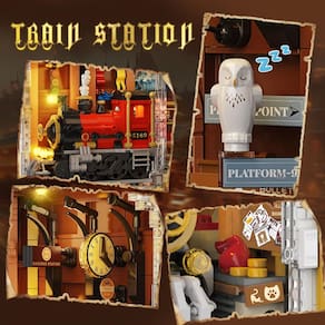 - ?Conjunto de montar Magic Book Nook? Junte magia com a ponta dos seus dedos! Este conjunto de construção de recanto encantado da estação de trem combina a funcionalidade clássica de recanto de livros com uma experiência imersiva de montagem, com cada bloco ocultando detalhes sutis. De texturas vintage de parede de tijolos a relógios de estação e trem a vapor. Se você está aproveitando a diversão de construir sozinho ou passando tempo entre pais e filhos com seu filho, você pode ter uma sensação de realização e surpresa na interseção entre magia e realidade!