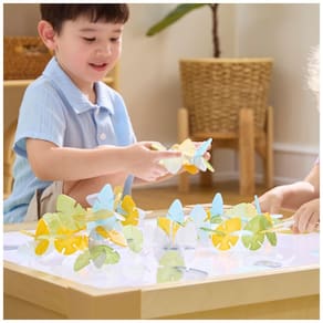 O Guidecraft Interlox Leaves é um conjunto de construção com peças em formato de folha, indicado para crianças a partir de 2 anos, que permite criar composições planas e estruturas tridimensionais leves. Cada peça possui bordas entalhadas que se encaixam umas nas outras, formando conexões firmes para atividades de padronagem, equilíbrio e transparência, inclusive sobre mesas de luz.?