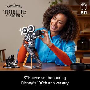 - Brinque e exiba – Este conjunto de montar de fãs da Disney cheio de recordações tem 811 peças que criam vários itens distintos, incluindo uma câmera de filme antiquada e uma lousa do diretor com câmera multiplano
