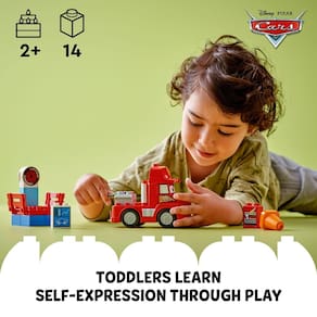 Conjunto de construção LEGO DUPLO Cars Mack at The Race da Disney e Pixar, brinquedo infantil para meninos e meninas, brinquedo de carro para crianças aprenderem brincando, caminhão Red Hauler montável do The Cars Movie, 10417 - Brinquedo de veículo montável para jovens fãs de caminhões — Alimente a brincadeira criativa com brinquedos para meninos, meninas e crianças de 2 anos ou mais com o set Mack at the Race, inspirado no camião LEGO DUPLO dos filmes Carros da Disney e Pixar com acessórios criativos — Inclui um modelo dirigível e montável dos filmes Mack from the Cars, da Disney e Pixar, além de uma estação de ajuste construída em tijolos, motor e um cone - Jogo de veículos para pequenos mecânicos — Inspiradas nos filmes de carros da Disney e da Pixar, crianças pequenas descarregam o motor Lightning McQueen do brinquedo vermelho montável de caminhão e o ajustam usando o elemento chave - Ideia de presente para crianças em idade pré-escolar — Este conjunto é um presente divertido de aniversário, feriado ou a qualquer momento para crianças de 2 anos ou mais que adoram brinquedos automotivos e jovens fãs dos filmes Carros da Disney e Pixar - Uma experiência de jogo segura — Cada carro, caminhão, tijolo e elemento dos cenários LEGO DUPLO da Disney e Pixar são testados rigorosamente para garantir que cada brinquedo de construção atenda aos mais altos padrões globais de segurança - Aprenda brincando - os conjuntos LEGO DUPLO envolvem crianças em idade pré-escolar e desenvolvem suas habilidades motoras finas e a autoexpressão, enquanto os pais compartilham seus preciosos marcos de desenvolvimento - Dimensões do caminhão - Este brinquedo infantil montável mede mais de 4 polegadas (11 cm) de altura, 5,5 pol. (14 cm) de comprimento e 2,5 pol. (7 cm) de largura