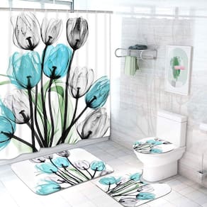 Material: poliéster Estilo: moderno Padrão: planta Número do modelo: 8,17ABY Característica: ecológico Material: fibra de poliéster Tamanho do tapete de banheiro: 45 x 75 cm/17,7 x 29,5 Tamanho da cortina de chuveiro: 180 x 180 cm/70,8 x 70,8 Aplicação: banheiro, vaso sanitário, quarto, chuveiro, etc Veja menos