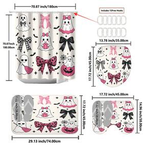 Tamanho do tapete antiderrapante: 45* 38 cm; tamanho do tapete de banho: 74* 45 cm; tamanho do assento do vaso sanitário: 35* 45 cm; tamanho da cortina de chuveiro: 180* 180 cm; peso: 675 g; material: poliéster; cor: igual à primeira foto; pacote: 1 x tapete antiderrapante, 1 x tapete antiderrapante de banheiro, 1 x assento sanitário, 1 x cortina de chuveiro (cor igual à imagem principal) Spooky Design de Halloween: com uma cena divertida e assustadora de Halloween com morcegos, fantasmas e árvores assustadoras, este conjunto de cortinas de chuveiro cria o ambiente perfeito de Halloween em seu banheiro. Material durável e impermeável: feita de poliéster de alta qualidade, esta cortina de chuveiro é resistente à água e durável, proporcionando desempenho duradouro para todas as suas necessidades de banheiro. Conjunto completo de decoração de banheiro: inclui uma cortina de chuveiro (180x180cm), tapete de banho antiderrapante (74x45cm), tampa da tampa do vaso sanitário (35x45cm) e tapete (45x38cm) para uma aparência de banheiro coesa e elegante. Fácil de limpar e manter: o tecido de poliéster é lavável à máquina, facilitando a limpeza e a manutenção, garantindo que seu banheiro permaneça fresco e festivo durante toda a temporada. Perfeito para amantes do Halloween: ideal para quem adora o Halloween, este conjunto de banheiro divertido e assustador traz o espírito da temporada para o seu banheiro com cores vibrantes e designs assustadores.