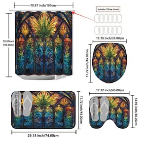 Tamanho do tapete antiderrapante: 45* 38 cm; tamanho do tapete de banho: 74* 45 cm; tamanho do assento do vaso sanitário: 35* 45 cm; tamanho da cortina de chuveiro: 180* 180 cm; peso: 675 g; material: poliéster; cor: igual à primeira foto; pacote: 1 x tapete antiderrapante, 1 x tapete antiderrapante de banheiro, 1 x assento de vaso sanitário, 1 x cortina de chuveiro Este conjunto exclusivo de cortinas de chuveiro apresenta um tapete antiderrapante design inspirado em vidro com folhas vibrantes e coloridas, trazendo um toque artístico e arrojado à decoração do seu banheiro. Feita de poliéster durável e resistente à água, esta cortina de chuveiro é fácil de limpar e projetada para uso duradouro, perfeita tanto para banhos diários quanto para criar uma atmosfera elegante. O conjunto completo de 4 peças inclui uma cortina de chuveiro de 180x180 cm, uma tampa de vaso sanitário antiderrapante de 45x38 cm, um tapete de banho de 74x45 cm e um tapete antiderrapante, proporcionando uma aparência coesa e decorativa para seu banheiro. O estilo intrincado de vitrais adiciona um toque sofisticado e moderno, tornando-o a escolha ideal para aqueles que amam uma decoração inspirada na natureza com um toque contemporâneo. Fácil de instalar com ganchos resistentes à ferrugem, este conjunto de cortinas de chuveiro iluminará seu banheiro, mantendo seu espaço seco e protegido com suas propriedades à prova d'água.