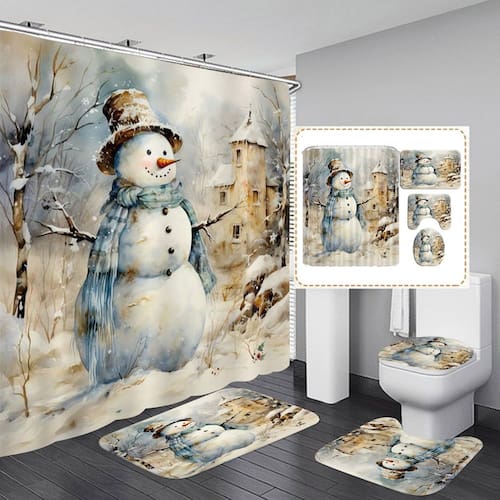 Sobre a "Hewego": Nossos excelentes designers Hewego estudaram moda e design na França. Nossa filosofia de design é dar a cada cliente o prazer da beleza. Aproveite a vida, aproveite o uso dos produtos da Hewego. A embalagem inclui: ? 1 cortina de chuveiro com 12 ganchos de cortina de chuveiro ? 1 tapete de chão ? 1 tapete em forma de U ? 1 tapete de tampa de vaso sanitário Características: ? Macio ? Seguro e saudável ? Ecológica ? Impermeável (cortina de chuveiro) ? Antiderrapante (tapetes) ? Durável ? Fácil de limpar e secar rapidamente ? Imagem de alta definição com design diferenciado Especificações: ?Material: 100% poliéster macio (cortina de chuveiro); flanela macia (tapetes) ?Tamanho: Cortina de chuveiro 180 x 180 cm / 71 x 71 polegadas Tapete de chão: 50 x 80 cm / 32 x 20 polegadas Tapete em forma de U: 50 x 60 cm / 20 x 24 polegadas Tapete de tampa de vaso sanitário: 38 x 44 cm / 15 x 18 polegadas Dicas quentes: Devido à medição manual, permita um desvio de 1 a 2 cm. Como a resolução da imagem e as configurações de exibição do computador são diferentes, as cores podem ser ligeiramente diferentes. A cortina de chuveiro é lavável na máquina. Limpe em água abaixo de 30 ° C. Passar a ferro dentro de 100 ° C. Recomenda-se lavar os tapetes à mão. Não secar na máquina, lavar a seco ou usar alvejante. - ?Conjunto de cortina de chuveiro de boneco de neve?Este conjunto de banheiro de boneco de neve com cortina de chuveiro de Natal é feito com tecnologia de impressão HD, todas as imagens são claras e vívidas, trará ao seu banheiro uma atmosfera adorável e alegre. Enviaremos 12 ganchos ao mesmo tempo, para que você possa instalá-lo facilmente e não enferrujar. - ?Combinação perfeita?: a cortina de chuveiro é feita de poliéster de alta qualidade. O design à prova d'água de dupla face torna a cortina fácil de limpar e secar rapidamente. Você pode usar o bocal do chuveiro para enxaguar facilmente. Outros 3 tapetes são feitos de flanela com 100% selecionados. Eles são todos muito macios e quentes. Esses tapetes são feitos com técnicas especiais para torná-lo à prova de derrapagem. - Detalhes de tamanho: este pacote inclui 1 cortina de chuveiro, 1 tapete oblongo, 1 tapete em forma de U e 1 capa de assento de vaso sanitário. Esta cortina de chuveiro de fundo de boneco de neve com cachecol e ramo tem 171 cm aproximadamente; o tapete oblongo tem 71 cm aproximadamente; o tapete em forma de U tem 45 cm aproximadamente cm. A capa do assento do vaso sanitário tem cerca de 38 cm = 43 cm. Também temos um tamanho maior, por favor, escolha o que melhor se adapta ao seu banheiro. - ?Fácil de limpar e instalar?: oferecemos 12 ganchos. Você não precisa se preocupar em como instalá-lo. Esses ganchos não ficarão enferrujados. Todos esses conjuntos de cortinas de chuveiro com tapetes são fáceis de limpar. Para mantê-lo em boas condições, sugerimos que você lave na máquina com água fria, pendure para secar, passe a ferro em baixas temperaturas, não exponha ao sol, não use alvejante. Esta cortina de chuveiro só precisa de toalhas ou escovas macias para esfregar. E esses tapetes são laváveis na máquina. - ?Ampla utilização?: Você pode usar este boneco de neve com cachecol e fundo de ramo projetado para decorar sua casa, motéis, hotéis, dormitórios e muito mais. Você também pode usá-lo para decorar seu banheiro, parede, janela e qualquer espaço onde quiser. O tapete oblongo pode ser utilizado na porta da frente.