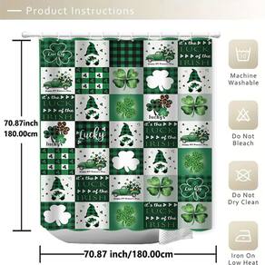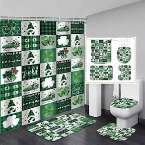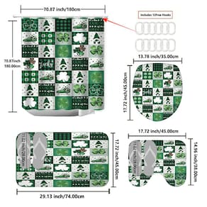 Tamanho do tapete antiderrapante: 45* 38 cm; tamanho do tapete de banho: 74* 45 cm; tamanho do assento do vaso sanitário: 35* 45 cm; tamanho da cortina de chuveiro: 180* 180 cm; peso: 800 g; material: poliéster; cor: igual à primeira foto; pacote: 1 tapete antiderrapante, 1 tapete antiderrapante de banheiro, 1 x assento sanitário, 1 x cortina de chuveiro Design festivo do Dia de São Patrício: apresenta um design repleto de trevos sortudos, gnomos e a frase “É a sorte dos irlandeses”, perfeito para comemorar o Dia de São Patrício e adicionar charme à decoração do seu banheiro. Poliéster de alta qualidade: feito de poliéster durável e impermeável, este conjunto de cortinas de chuveiro garante longevidade, fácil manutenção e cores vibrantes que duram. Conjunto completo de 4 peças: inclui uma cortina de chuveiro (180x180 cm), tapete de banho antiderrapante (74x45 cm), tampa da tampa do vaso sanitário (35x45 cm) e tapete combinando (45x38 cm) para criar um banheiro festivo e totalmente coordenado. Perfeito para o Dia de São Patrício: ideal para adicionar um toque de sorte e charme irlandês ao seu banheiro durante o feriado ou durante todo o ano com um tema divertido e sazonal. Fácil instalação e limpeza: o conjunto inclui 12 ganchos para facilitar a instalação, e o material de poliéster é de secagem rápida e fácil de limpar para o uso diário.