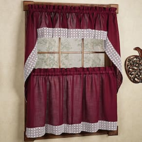 Sweet Home Collection Conjunto de 5 peças de cortina de cozinha com 24 polegadas, conjunto de camadas de 91 cm, vinho Salem - O conjunto de 5 peças inclui 2 guirlandas, 2 camadas, 1 saia - Dimensões do nível: 61 cm de largura x 152 cm de comprimento - Dimensões do swag: 96,5 cm de largura x 152,4 cm de comprimento - Dimensões da sanefa: 30,5 cm de largura x 152,4 cm de comprimento - Cuidados com o tecido: lavar à máquina