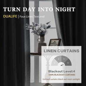 A Dualife como facilitadora é proteger sua qualidade de vida. "Dual" significa qualidade maravilhosa e cores modernas. Sweet Life com satisfação e felicidade. Linda textura de linho: trabalho trabalhado com textura de linho luxuosa, adicione vida casual e aconchegante à sua casa. As cortinas blackout DUALIFEsem luz são criadas com um material de estilo de linho texturizado macio para um visual lindo. Estas cortinas de linho grossas são versáteis, seja qual for o estilo moderno de casa de fazenda ou decoração tradicional. Amplamente utilizado para quarto, sala de estar, pátio, quarto de berçário, casa de fazenda, divisor de quarto, sala de jantar, porta deslizante, lavanderia. Cortinas blackout de linho são mais duráveis, suavidade, rugas . Lavável na máquina. 2 painéis cada pacote, largura da cortina 86 cm 127 cm, 182 cm, 213 cm, três comprimentos 137 cm, 160 cm, 182 cm, 203 cm, 213 cm, 228 cm, 243 cm, 243 cm, 243 cm, 276 cm, 270 cm, 270 cm, 270 4,3 cm. 304,8 cm, 335,3 cm Você pode pendurar suas cortinas pretas com 4 métodos. Uso amplo para sua maneira de pendurar preferida. (1) Use os laços traseiros para criar um efeito plissado elegante. (2) Um estilo clássico de bolso de haste, design de bolso para haste cria pregas facilmente, adicionando estilo decorativo. passando o bolso da haste de 8,4 cm. (3) Usando seu próprio anel de clipe (4) Usando pequenos ganchos no cinto de gancho e fixando em seus próprios anéis. (Anéis e ganchos não estão incluídos). Então você terá um estilo elegante de cortinas de janela plissadas. Temos diferentes cores e tamanhos para atender ao seu estilo. Pode bloquear 100% da luz solar brilhante e dos raios UV, virar de dia para noite, desfrutar do seu doce sono e proteger seus móveis do desbotamento da cor, proporcionando privacidade em sua adorável casa. - Informações básicas: conjunto de 2 painéis de linho blackout por pacote. Possui estilos de pendurar com aba traseira e bolso para haste para um estilo versátil. A parte superior das cortinas blackout de linho sintético com bolso de 7,6 cm e com seus próprios clip-rings, ganchos de chuveiro, ganchos de pino e ganchos de pregas. Meça a largura e a altura da sua janela com antecedência para obter o efeito decorativo e funcional desejado. Nossas cortinas são puramente feitas à mão. feito, pode haver 2,5 a 7,6 cm de erro no tamanho. - MATERIAL INOVADO: nossas cortinas blackout de linho são feitas de um tecido de mistura de linho, as cortinas são feitas de tecido de trama tripla, frente e traseira são um material de cor homocromática. (Exceto branca) A camada intermediária é preta, o que pode bloquear 100% do sol para que a cor do objeto pareça um pouco escura. Nossas cortinas blackout drapejam bem. As cortinas resistentes com isolamento térmico mantêm o calor dentro de casa no inverno e descarregam o calor no verão equilibram a temperatura ambiente. - Blackout total: cortinas térmicas para quartos podem efetivamente reduzir o impacto do ruído e proporcionar um ambiente de vida de qualidade silencioso e confortável. E também mantêm completamente fora da luz solar e dos raios UV. Oferece uma barreira isolada contra o calor do verão e o frio do inverno para equilibrar a temperatura ambiente e economizar energia. É adequado para quarto, sala de estar, pátio, portas deslizantes, teatros, conjunto. O comprimento longo oferece ampla cobertura, tornando-as ideais para janelas maiores ou tetos altos. - Versátil e adaptável: o tecido rico de linho misturado com poliéster apresenta um tom de linho neutro, efeito primitivo e natural torna os painéis mais drapeados e estéticos. Sensação de toque macio premium nessas elegantes cortinas de mistura de linho, adicionam um charme refrescante à sua janela. A textura de cor lisa e casual é perfeita para uma casa de fazenda rústica moderna, country chique, rústico ou estilo clássico tradicional. - Fácil de cuidar: lavável na máquina em água fria, use apenas alvejante sem cloro quando necessário, secar em temperatura baixa e passar a ferro quente conforme necessário.