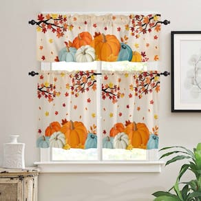 Características: Elegante e decorativo: estas sanefas de cozinha são feitas de tecido de mistura de poliéster durável com estampa delicada, essas saias são filtrantes de luz e permitem que um pouco de luz ainda entre. Uso versátil: Feito uma saia de cozinha perfeita, cortinas curtas para sala de estar, saia de janela para banheiro, cortina de sanefas para quarto, sanefas de porta de vidro deslizante. Trazendo à sua casa uma sensação luxuosa e sofisticada. Sanefa para amarrar sombra Você pode pendurá-lo quando precisar de luz solar, e os botões em diferentes posições podem ajustar diferentes níveis de luz. Quando você precisar adormecer ou proteger sua privacidade, você pode optar por pendurar a sanefa. Isso definitivamente atenderá às suas necessidades em diferentes momentos. Também lhe dá uma boa visão para aproveitar a paisagem fora da janela. Tamanho do produto 42W x 30L 42 Largura x 45 Alto 14 Largura x 45 Alto 152 cm largura x 45 cm altura 134 cm de largura x 45 cm de altura + 2 x 68 cm de largura x 61 cm de altura (3 peças) 144 de largura x 45 cm de altura + 2 x 68 de largura x 96 cm de altura (3 peças) As sanefas de vários tamanhos são projetadas para a maioria das janelas de cena. Macio e durável Confortável e macio ao toque Pontos bonitos e limpos Efeito drapeado Longa vida útil, durável e não desbota facilmente. Parte superior de bolso para varão Cabeça de 2,54 cm e bolso para varão de 7,62 cm Instalação sem ferramentas Pode passar pelo varão de cortina de 2,5 a 7,6 cm. Nossos painéis drapeados são fáceis de serem mantidos e instalados Limpeza fácil Lavável na máquina em água fria. Não usar alvejante Passar a ferro em baixa temperatura (120 °C). Estamos sempre fazendo o nosso melhor para fornecer o melhor serviço e produtos confiáveis para cada cliente, se você tiver alguma dúvida, . - O conjunto de sanefa de abóbora de outono inclui: seu pacote incluirá 1 cortina de sanefa medindo 137 cm L x 45 cm C e 2 painéis de cortina medindo 68 cm L x 91 cm C (camadas totais L 137 cm L x C 91 cm). O design do bolso da haste permite pendurar facilmente em um varão de cortina padrão, tornando as cortinas fáceis de instalar e deslizar. - Privacidade e filtragem de luz: o conjunto de 3 peças de camadas e sanefa pode filtrar a luz solar enquanto evita que seus móveis e piso sejam danificados pela luz solar forte. Seu espaço pode ser mantido leve e arejado enquanto você pode desfrutar de suas próprias atividades na sala de estar sem ser perturbado por olhares. - Decorativo e elegante: abóbora clássica de outono, padrão de folha de bordo funciona muito bem para decorações de janelas de casa de outono. Eles podem ser utilizados como cortina de sala como saia de banheiro, saia de quarto, saia de porão, usada no armário, prateleira ou qualquer lugar que você queira colocar, por isso também é presente perfeito para familiares, amigos e outras pessoas. - Várias aplicações: nossas cortinas de camada de limão e sanefa são perfeitas para cozinha, casa de fazenda, lavanderia, café, sala de estar, quarto, escritório, quarto infantil, berçário e muito mais - Fácil de cuidar: lavar à máquina a frio, ciclo delicado em saco de malha, apenas alvejante sem cloro quando necessário, secar em temperatura baixa, ferro frio, se necessário.