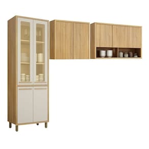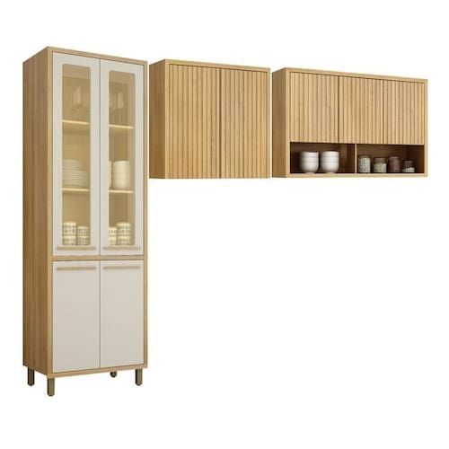 Renove sua cozinha com nosso Conjunto Armário Paneleiro e Armários Aéreos Ripados! O paneleiro com 4 portas e detalhes em vidro oferece amplo espaço para organizar utensílios e mantimentos. Complemente com dois armários aéreos ripados que adicionam um toque moderno e elegante. Ideal para quem busca funcionalidade e estilo na cozinha. Altura do Conjunto: 226 cm Ambiente: null Ambiente Principal: Cozinha Cor: Cinamomo/Off White Informação Complementar: 1x Armário Paneleiro 4 Portas com Vidro Torino Cinamomo/Off White Largura: 73 cm Altura: 226 cm Peso: 63,5 kg Profundidade: 50 cm Necessita Montagem: Sim