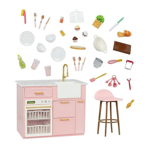 Onde as criativas chefs vão adorar brincar Incrível cozinha com peças realistas, bancada de mármore, pia com torneira, gavetas e máquina de lavar louça.Emite 3 sons de lavagem de louça. Inclui mais de 30 peças. bonecas vendidas separadamente Homologação Inmetro: IP-BRI-1866/2021-03