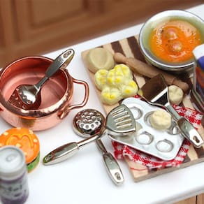 Tamanho do produto (CM): Veja a imagem detalhada Peso do produto (g): 5g Material: liga Design realista: este conjunto inclui 4 utensílios de cozinha em miniatura: espátula, escumadeira, concha e escumadeira, projetados para aprimorar a cozinha da casa de bonecas com utensílios de cozinha realistas. Material de alta qualidade: feitos de liga durável, esses utensílios são finamente elaborados para replicar acessórios de cozinha da vida real, tornando-os um complemento perfeito para a configuração de sua casa de bonecas. Perfeito para brincar de fingir: incentiva brincadeiras criativas adicionando utensílios de cozinha funcionais e realistas à sua casa de bonecas, ideais para crianças que gostam de interpretar papéis e contar histórias. Detalhado e funcional: cada utensílio apresenta detalhes intrincados e é dimensionado proporcionalmente para a escala 1:12, oferecendo uma experiência decorativa e interativa para sua casa de bonecas. Produto que não é brinquedo: Este é um modelo decorativo em miniatura, não adequado para crianças menores de 3 anos devido às peças pequenas. Destinado a colecionadores de casas de bonecas ou como parte de uma configuração em miniatura.