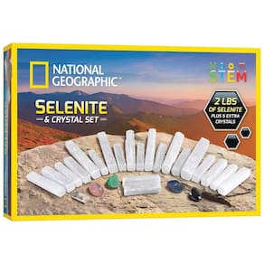 VARINHAS SELENITE PREMIUM Esta selenita é verdadeiramente especial. Varinhas longas medem até 12,7 centímetros e varinhas curtas medem até 7,62 centímetros. Cada varinha tem entre 0,64 centímetros e 1,27 centímetros de espessura. Existem aproximadamente 5 varinhas longas e 15 varinhas curtas no conjunto. GEMAS E CRISTAIS ADICIONAIS Junto com as belas varinhas de cristal de selenita, você também receberá 5 pedras de cristal polidas e deslumbrantes, incluindo hematita, quartzo rosa, ponto de quartzo, aventurina verde e quartzo azul. CRISTAIS FASCINANTES Selenita é um cristal incrível, capaz de crescer em proporções maciças nas condições certas. Este conjunto dá às crianças a oportunidade de examinar de perto a selenita real e outros cristais, inspirando um amor ao longo da vida pela geologia INICIAR UMA JORNADA DE DESCOBERTA Você também receberá uma folha de identificação que detalha fatos históricos interessantes sobre os cristais neste conjunto, juntamente com descrições de crenças espirituais atribuídas a cada um de uma variedade de culturas ao redor do mundo. SATISFAÇÃO GARANTIDA A série STEM da National Geographic oferece brinquedos educativos de alta qualidade para crianças que são muito divertidos Se a sua experiência é algo menos do que extraordinário, deixe nos saber para que possamos torná lo certo para você Marca: Não Informado
