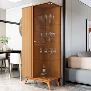 Com portas amplas, prateleiras bem distribuídas e visual moderno, ele valoriza suas taças e objetos, deixando tudo organizado com estilo.
