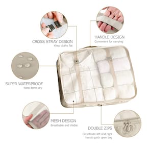 - ?Conjunto de 8 peças de grande capacidade?Diferentes tamanhos de conjuntos de bolsas essenciais de viagem podem armazenar roupas classificadas, roupas sujas, sutiãs, roupas íntimas, calçados, cosméticos, toalhas, artigos de higiene e acessórios eletrônicos. É um bom companheiro de viagem.