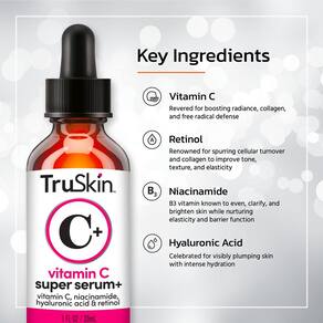 - C PLUS SUPER SERUM: Muito mais do que um sérum C iluminador, esta fórmula sedosa de espectro completo contém todos os MVPs antienvelhecimento — vitamina C, retinol, ácido hialurônico, niacinamida e ácido salicílico — para ajudar a pele a evitar o desconforto oxidativo, pois combate intensamente a descoloração, firmeza, linhas finas e manchas.
