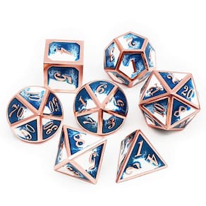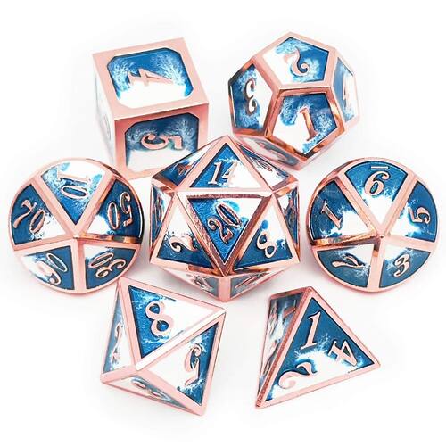 Os dados de metal de cor mista Haxtec Ice Dragon Bait são projetados para serem dados pesados que podem ser utilizados diariamente em uma variedade de jogos de RPG. Ele imita uma cena de campo de gelo de forma muito vívida. Pronto para ter algo especial que com certeza fará com que você seja uma inveja no círculo? Comece sua jornada com esses adoráveis dados dnd agora! De acordo com o histórico de vendas, geralmente são presentes incríveis ou opções de coleção para seus entes queridos! Cenários de uso: Perfeito para jogos de mesa de RPG e jogos de tabuleiro, como Dungeons and Dragons, Shadowrun, Pathfinder, Savage World, Warhammer, Yahtzee e muitos outros RPGs. Especificação: Material: Metal (liga de zinco) Tamanho: 14-22 mm Peso líquido: 105 g/0,23 lb O pacote inclui: 1 conjunto de dados de 7 peças que contém um de cada D4, D6, D10 (0-9), D10 (00-90), D12, D20. 1 bolsa de armazenamento de couro preto — Conjunto de dados DND de metal branco azul rosa: conjunto de 7 peças contendo: D20, D12, D10, D%, D8, D6, D4 — Bolsa de dados de couro PU de qualidade incluída. - Dados de metal pesado: os dados são feitos com liga de zinco sólido, que é pesada na mão e bem balanceada. Use uma bandeja de dados para rolar para proteger a mesa. - Lindos dados de metal bicolor: o azul com cores brancas misturadas fica lindo em detalhes em cobre/ouro rosa, lembra perfeitamente a aparência do campo de gelo e das ondas no oceano. - Acessório TTRPG de uso versátil: uso perfeito para jogos de dados de RPG de mesa como D&D (Dungeons and Dragons), Shadowrun, Pathfinder, Savage World, Warhammer, Yahtzee e muitos outros RPGs.