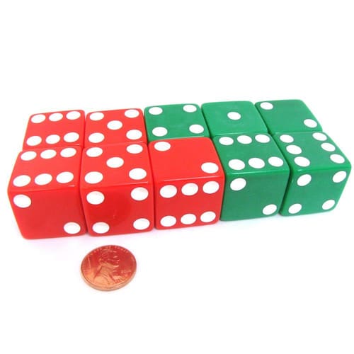 Bom para usar em qualquer tipo de jogo de tabuleiro que use dados e jogos de dados tradicionais. Receba 5 de verde com pip branco e 5 de vermelho com pip branco. Ótima combinação de cores.