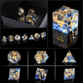 Dados - Material dos dados: Resina natural, resistente ao desgaste, forte. A resina natural pode efetivamente evitar arranhões, dados de resina, como o novo por um longo tempo. - Especificação do conjunto de dados DND: 7 peças por conjunto, inclui D4, D6, D8, D10, D12, D20 e D%. Cada dado de resina afiada é lixado e polido à mão para manter suas belas bordas afiadas. - Fácil leitura e boa sensação ao toque: números grandes e fáceis de ler com sensação de mão irresistível ponderada. O tamanho é um padrão comum de dados D&D no mercado. - Multiuso: utilizado para jogos de tabuleiro, jogos de RPG de mesa como D&D (Dungeons and Dragons), Shadowrun, Pathfinder, Savage World, Warhammer, Yahtzee, Heroscape e muitos outros RPG, ensino de matemática, etc. - Compre com confiança: estamos comprometidos em fornecer o melhor produto e excelentes serviços para você. Se ocorrer algum problema de qualidade, não hesite em procurar ajuda no nosso atendimento ao cliente, não pouparemos esforços para ajudá-lo a resolver o problema.