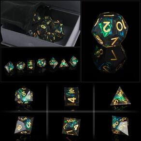 Dados - Material dos dados: resina natural, resistente ao desgaste, forte. A resina natural pode efetivamente evitar arranhões, dados de resina como os novos por um longo tempo. - Especificação do conjunto de dados DND: 7 peças por conjunto, inclui D4, D6, D8, D10, D12, D20 e D%. Cada dado afiado de resina é lixado e polido à mão para manter suas belas bordas afiadas. - Leitura fácil e boa sensação: números grandes e fáceis de ler com sensação de mão irresistível e pesada. O tamanho é um padrão comum de dados D&D no mercado. - Multiuso: utilizado para jogos de tabuleiro, jogos RPG de mesa como D&D (Dungeons and Dragons), Shadowrun, Pathfinder, Savage World, Warhammer, Yahtzee, Heroscape e muitos outros RPGs, ensino de matemática, etc. - Compre com confiança: estamos comprometidos em fornecer o melhor produto e excelentes serviços para você. Se ocorrer algum problema de qualidade, não hesite em recorrer ao nosso serviço de atendimento ao cliente para obter ajuda, não pouparemos esforços para ajudá-lo a resolver o problema.