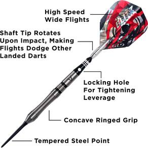 - Aderência recortada - O design curvo e anelado desses canos de tungstênio permite que você segure facilmente esses dardos da mesma maneira todas as vezes, para arremessos consistentes e pontuações mais altas
