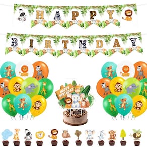 Conjunto completo de temas de selva: inclui banner de “Feliz Aniversário”, 18 balões de animais, 13 coberturas de cupcake e 1 cobertura de bolo, todas com adoráveis animais da selva, como leões, elefantes e girafas. Materiais de alta qualidade: feitas de látex durável e papel premium, as decorações são seguras, não tóxicas e reutilizáveis, adequadas para celebrações internas e externas. Design vibrante de safári: cores vivas da selva e estampas fofas de animais criam uma atmosfera alegre, perfeita para aniversários de crianças, eventos temáticos de zoológicos ou chás de bebê. Fácil de montar: o conjunto inclui uma fita plana para pendurar e pode ser montado rapidamente — ideal para criar um cenário fotográfico divertido ou uma peça central de mesa. Perfeito para festas infantis: dê vida à natureza com balões e banners de animais que encantam as crianças e dão um toque divertido e animado a cada evento com tema de selva.