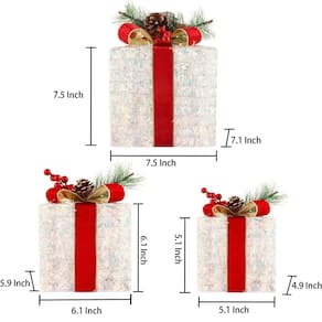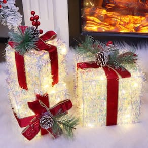 - Impressionantes caixas de presente iluminadas por LED: o conjunto de caixas de presente iluminadas de Natal da Fulong inclui três caixas distintas e elegantemente criadas, cada uma pré-iluminada com luzes LED brilhantes, cultivando uma atmosfera natalina encantadora.
