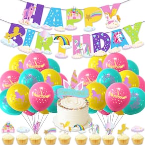Kit completo de festa de unicórnio: este conjunto inclui um banner colorido de “Unicórnio”, uma divertida cobertura de bolo e 30 balões de látex (10 rosa, 10 amarelos e 10 azuis), perfeitos para criar uma atmosfera mágica de festa. Design com tema de unicórnio: com motivos divertidos de unicórnios, arco-íris e estrelas, este conjunto adiciona um toque vibrante e extravagante às comemorações de aniversário, ideal para crianças que amam unicórnios. Balões de látex de alta qualidade: feitos de material de látex durável, esses balões de 12 polegadas são projetados para fácil inflação e uso duradouro, perfeitos para enchimento de hélio ou ar. Ideal para aniversários com tema de unicórnio: este kit é perfeito para festas com tema de unicórnio, trazendo alegria e emoção aos aniversários, comemorações ou qualquer evento mágico das crianças. Fácil configuração e decoração versátil: o banner e a cobertura de bolo são simples de montar, facilitando a organização de uma festa completa com o tema de unicórnio com o mínimo de esforço.