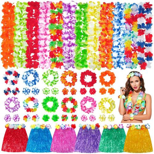 Conjunto de decorações de festa havaiano Leis Luau, 54 peças suprimentos de festa havaiana luau flores leis colares faixas de cabeça pulseiras grama hula saia deitado tropical verão praia aniversário lembrancinhas de festa de aniversário