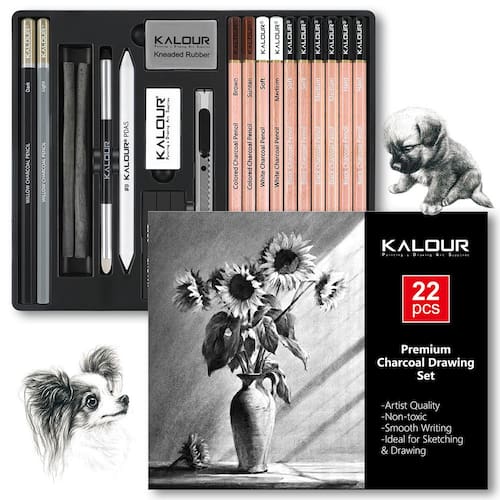Material: madeira Tamanho: 26 cm × 22 cm × 3,2 cm Peso: 240 g Kit de desenho completo: este conjunto de desenho a carvão de 22 peças inclui lápis de grafite, carvão de salgueiro, carvão branco, borrachas amassadas e de vinil e um toco de mistura, oferecendo tudo o que você precisa para começar a desenhar. Materiais de qualidade premium: feito com carvão e grafite de qualidade artística, este conjunto garante uma aplicação suave, sombreamento tonal rico e linhas limpas, ideal para artistas iniciantes e experientes. Uso versátil: adequado para várias técnicas de desenho, incluindo esboço, sombreamento, mistura e arte detalhada, este conjunto é perfeito para retratos, natureza morta e muito mais. Leve e portátil: pesando apenas 240 g, este conjunto é compacto e fácil de transportar, tornando-o ideal para artistas em movimento ou para quem prefere desenhar ao ar livre ou em sala de aula. Não tóxico e seguro: feito com materiais não tóxicos, este conjunto de carvão é seguro de usar, oferecendo aos artistas uma experiência de desenho confortável e segura.