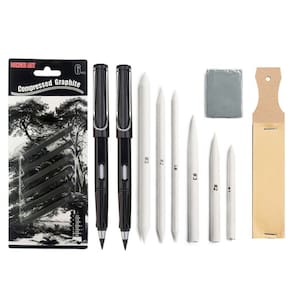 Material: madeira e plástico Tamanho: 23 cm × 12 cm × 2 cm Consulte a imagem para obter detalhes específicos de tamanho Peso: 120 g Kit de desenho completo: este conjunto de 16 peças inclui tudo o que você precisa para esboços detalhados, incluindo bastões de grafite comprimidos, tocos de papel, tortilhões e uma borracha amassada. Ferramentas versáteis de sombreamento e mesclagem: use os tocos e tortilhões de papel para sombrear e mesclar suavemente, criando transições sutis e texturas suaves em seus desenhos. Grafite de alta qualidade: o grafite comprimido é perfeito para linhas escuras e ousadas e para adicionar profundidade, ideal para artistas que trabalham com técnicas de carvão, grafite ou pastel. Portátil e organizado: todas as ferramentas vêm em um conjunto compacto e organizado, facilitando o armazenamento e o transporte de seus materiais de desenho para aulas de arte ou desenhos em qualquer lugar. Ideal para artistas e iniciantes: seja você um artista profissional ou iniciante, este conjunto fornece as ferramentas essenciais para técnicas de esboço, mesclagem e artes plásticas.