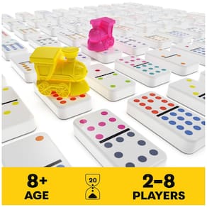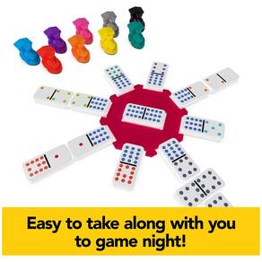 Pack & Go Mexican Train Dominoes da Spin Master Games Portable Dominoes Set Kids Games Jogos de tabuleiro clássicos para adultos e crianças de 8 anos ou mais - MEXICAN TRAIN DOMINOES: Este jogo de estratégia é para 2 a 8 jogadores, portanto, pode ser jogado em grupo ou como um jogo de 2 jogadores. Jogue todos os dominós em sua mão para marcar zero e vencer a rodada. A pontuação mais baixa após 13 rodadas vence! - JOGO DE VIAGEM PACK & GO: A pequena embalagem para viagem torna este conjunto de dominó para adultos e crianças fácil de levar com você para a noite de jogos! É leve, moderno, colorido e portátil - o que mais você poderia querer? - DIVERSÃO DE INÍCIO RÁPIDO: basta tirar este jogo de tabuleiro de estratégia da caixa e CHOO-CHOO; você está viajando para jogar Mexican Train Dominoes para crianças e adultos a partir de 8 anos. - QUEBRA-CABEÇAS, BRINQUEDOS E JOGOS SPIN MASTER: Um mundo de quebra-cabeças e jogos de tabuleiro familiares para crianças, adolescentes e adultos. Além de estratégia, cartas e jogos de tabuleiro clássicos, como dominó, mahjong ou um jogo de xadrez. - ENTRETENIMENTO PARA TODOS: Quando estiver com amigos, leve um jogo, brinquedo ou cartas do Spin Master. Para noites de jogos em família, presentes de aniversário, jogos de festa, viagens e sempre que você quiser se divertir. - Inclui 92 dominós Double Twelve, 9 motores de trem, 1 hub e instruções - cobertas pelo compromisso da Spin Master Care. Veja abaixo os detalhes completos