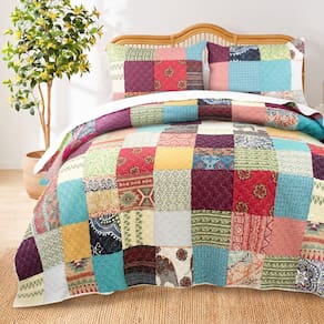 Conjunto de edredões forrado de algodão Greenland Home Renee Upcycle Unique Remnant Fabric, 3 peças King/Cal King