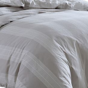 Conjunto de edredom duplo Benjara Kia de 2 peças, algodão tingido com fio, listras verticais bege, castanho e marfim