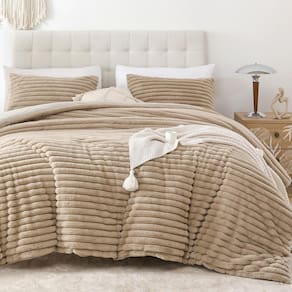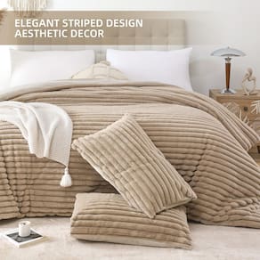 - ?Excelente design de decoração para casa?Com um padrão excepcional de listras de lã com uma textura 3D, este edredom de tamanho completo oferece uma experiência sensorial encantadora. Os edredons macios de tamanho completo apresentam um design listrado distinto, oferecendo um acabamento de pelúcia de linho moderno, refinado e elegante. Este luxuoso conjunto de edredom melhora a aparência de qualquer cômodo, complementando vários estilos de decoração de casa e adicionando um toque de sofisticação à sua casa.