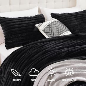 - ?Excelente design de decoração para casa?Com um padrão excepcional de listras de lã com uma textura 3D, este edredom de tamanho completo oferece uma experiência sensorial encantadora. Os edredons macios de tamanho completo apresentam um design listrado distinto, oferecendo um acabamento de pelúcia preto moderno, refinado e elegante. Este luxuoso conjunto de edredom melhora a aparência de qualquer cômodo, complementando vários estilos de decoração de casa e adicionando um toque de sofisticação à sua casa.