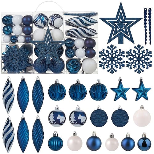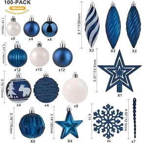 Conjunto de enfeites de bola de Natal de 100 quilates – Conjunto de enfeites de árvore suspensos variados à prova de estilhaçamento com pacote de presente reutilizável para festa de Natal e decoração de casa (azul) - WIRONLST Ornamentos de Natal 2024 – Estes enfeites de bola têm vários elementos clássicos e populares de Natal. Reúna a família ou amigos para decorar a árvore de Natal juntos! Ilumine sua casa com este complemento perfeito para sua decoração sazonal. - Ornamentos de Natal inquebráveis – Estes enfeites de bola de Natal são à prova de estilhaçamento, eles também são leves e não pesam nos galhos da árvore de Natal, o que permite mais decorações. Eles serão perfeitos para decorar sua casa e se tornar parte da tradição de suas férias. - Pacote com 100 enfeites de Natal – Conjunto de 100 peças de enfeites de Natal em uma variedade de formas e designs, ajuste perfeito para qualquer árvore de tamanho normal. Caixa de presente de plástico reutilizável de mão incluída. Os ornamentos inquebráveis combinam a beleza e o brilho do vidro real com a praticidade inquebrável do plástico. - Ornamentos para crianças e animais de estimação – Estes enfeites de árvore são feitos de plástico premium e têm um design inquebrável que é perfeito para pendurar em casas com pequenos e amigos peludos correndo por aí. - Decoração perfeita para festas de fim de ano – é um ótimo complemento para suas decorações de Natal e decoração de férias. Decoração de casa perfeita para uma exibição variada de Natal, casamento, festa, aniversário, festivais e dias especiais.