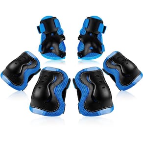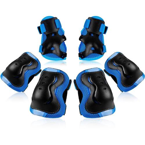 - Tecidos ventilados – o conjunto de joelheiras e cotoveleiras infantis BOSONER é feito de tecidos duráveis de alta qualidade, com enchimento de espuma EVA e tampas de cobertura total de policarbonato, que tem boa absorção de choque e efeito de amortecimento para reduzir os danos causados por quedas esportivas