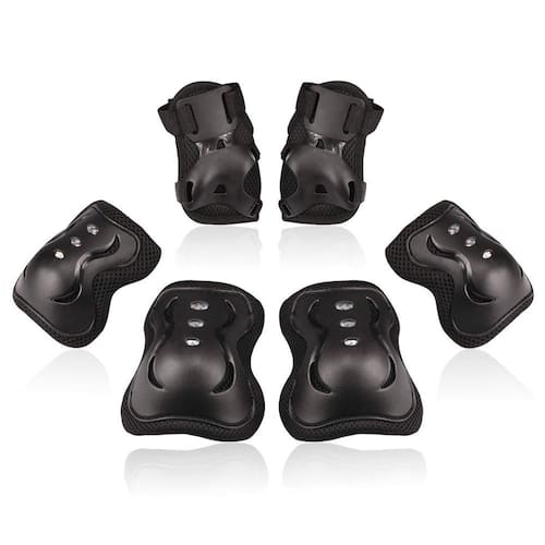 Bosoner Conjunto de 6 peças de equipamentos de proteção infantil, joelheiras e cotoveleiras com protetores de pulso Perfeito para skate, skate, rolo, ciclismo, bicicleta BMX, rolo em linha, patinete e qualquer outra atividade ao ar livre. Material durável Absorção de choque, seguro de segurança e design elegante. Joelheiras ajudam a aliviar a dor na patela. As almofadas de pulso fixam os pulsos e protegem os tecidos moles. As cotoveleiras fixam os cotovelos e ajudam a evitar dor. Tamanho P adequado para: 3-7 anos; joelheira: aprox. 4,9 x 4,1 polegadas (12,5 x 10,5 cm); Cotoveleira: Aprox. 4,5 x 3,5 polegadas (11,5 x 9 cm); almofada de pulso: aprox. 12,5 x 8,1 cm. Tamanho M adequado para: 6-15 anos; joelheira: aprox. 14 x 10,5 cm; Cotoveleira: Aprox. 5,3 x 3,7 polegadas (13,5 x 9,5 cm); almofada de pulso: aprox. 12,5 x 10 cm. Conteúdo da embalagem: 2 joelheiras. 2 cotoveleiras. 2 almofadas de pulso. as almofadas fazem um pouco de compressão no corpo por razões de segurança, as ressonáveis podem permitir que o corpo mantenha a posição certa enquanto anda com equipamentos esportivos como bicicleta, skate, patinação em linha e outros esportes ao ar livre, como vôlei, basquete, bicicleta BMX - Conjunto conveniente de equipamentos de proteção – as joelheiras BOSONER para crianças incluem 1 par de joelheiras protetoras de joelho, 1 par de cotoveleiras e 1 par de protetores de pulso com uma bolsa de lona respirável portátil - Tecidos ventilados – o conjunto de joelheiras e cotoveleiras infantis BOSONER é feito de tecidos duráveis de alta qualidade, com enchimento de espuma EVA e tampas de cobertura total de policarbonato, que tem boa absorção de choque e efeito de amortecimento para reduzir os danos causados por quedas esportivas - Ajuste elástico flexível – As almofadas de skate BOSONER para crianças e protetores de pulso adotam correias elásticas ajustáveis e fechos de fecho aderente para se ajustar firmemente ao seu joelho e cotovelo - Para crianças – As almofadas de proteção BOSONER para crianças são a boa escolha para o Dia das Crianças, aniversário, Natal, Dia de Ação de Graças, perfeitas para meninas e meninos - Vários esportes ao ar livre – o conjunto de joelheiras e cotoveleiras da BOSONER é projetado para proteção de segurança esportiva, para skate, patinação no gelo, patinação de bicicleta, scooter de bicicleta, andar de bicicleta, prancha flutuante, rolamento e outros esportes radicais que precisam de equipamentos de proteção contra impactos