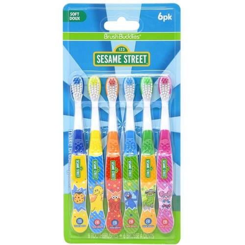 Brush Buddies Escovas de dentes Sesame Street, macias, conjunto de 6