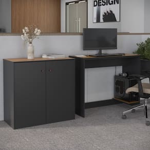 O Conjunto de Escritório Smart Office é compacto e funcional, ideal para ambientes profissionais e home office. Contando com seu Aparador Buffetde 2 Portas com dobradiças metálicas e a Escrivaninha com passa fios e suporte para CPU, ambos com tampo em MDF usinado e sapatas de PVC, unindo design moderno e praticidade. Confira a linha Smart completa em nossos anúncios e transforme seu espaço com inteligência e estilo!