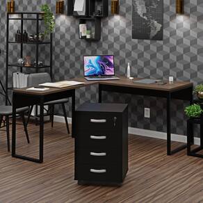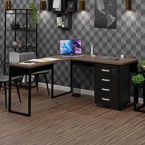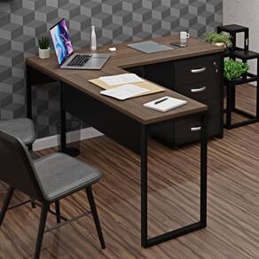 Juntos, construímos a sua satisfação! Produto Montado: Sim Ambiente Principal: Escritório codigo_ean: 7798442467071 Complexidade da Montagem: Média: pode ser montado por mais de uma pessoa e/ou necessite de maior conhecimento para montagem Cor: Nogal/Preto Cor do Produto: Nogal/Preto Escala de Brilho: Fosco Espessura do Tampo: 30 mm Formato: Em L Manual de Especificação Técnica: https://product-hub-prd.madeiramadeira.com.br/966285/documents/7808e5b6-55e1-4949-8735-4848048ad26c2511361525617302086760803.pdf Manual de Montagem e Instalação: https://product-hub-prd.madeiramadeira.com.br/966285/documents/a8056ba8-175a-43f6-a9db-bdf99b75d3222511360525617302086708414.pdf Marca: Netmobil Material Principal: MDP Montagem Flex: Sim Necessita Montagem: Sim Origem do Produto: Nacional Peso: 58 kg Possui Acabamento na Parte de Trás: Sim Possui Armários: Não Possui Balcão: Não Possui Borda Arredondada: Não Possui Cadeira: Não Possui Estante: Não Possui Gaveta para Pasta Suspensa: Não Possui Gaveteiro: 01 Possui Mesa de Reunião: 01 Possui Portas: Não Possui Prateleiras: Não Recomendações de Uso, Manutenção e Limpeza: Recomendamos que o móvel não seja exposto a excesso de água ou produtos de limpeza agressivos. A limpeza pode ser feita com um pano de flanela levemente umedecido em álcool. Sistema de Montagem: Necessita Montagem Tipo de Conjunto de Escritório: Escrivaninha e Gaveteiro