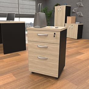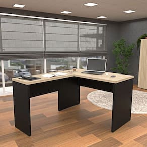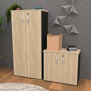 Aumente a produtividade com este conjunto de móveis para escritório, composto por uma mesa em L espaçosa e robusta, um gaveteiro volante móvel e prático, um armário alto para armazenamento e um armário baixo para organização diária, tudo com design moderno e materiais de alta qualidade.