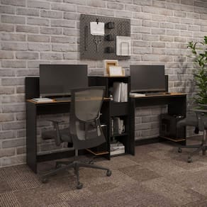 Conjunto de Escritório Smart 1 Livreiro e 2 Mesas 90cm - Preto