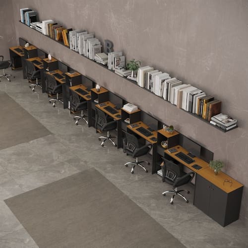 - Conteúdo da Embalagem: 07 Escrivaninha, 06 Livreiro, 01 Buffet e 03 Kit Divisórias - 17 Entregue em: Volumes.