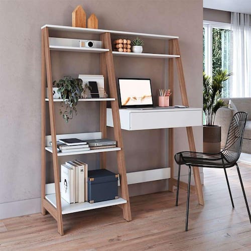 conjunto de escrivaninha com estante caen 1 gv branco e montana