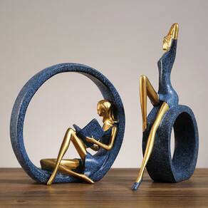 Material: Resina Tamanho: 20x20cm/20x4x27 cm Design elegante de figuras duplas — Este conjunto de esculturas apresenta duas figuras femininas elegantes, uma lendo e outra se estendendo graciosamente, emolduradas em formas circulares minimalistas para uma decoração artística e equilibrada. Artesanato em resina premium — Feitas de resina de alta qualidade com acabamento refinado em azul fosco e ouro metálico, essas estátuas são duráveis e visualmente impressionantes, ideais para um estilo doméstico moderno. Opções de exibição versáteis — Perfeitas para serem colocadas em armários de TV, estantes de livros, mesas de console ou mesas de escritório, adicionando um toque de elegância cultural e artística a qualquer ambiente. Simbólica e decorativa — A garota que lê simboliza calma e conhecimento, enquanto a figura alongada evoca relaxamento e atenção plena, tornando-a ideal como decoração temática para interiores serenos. Decoração artística nórdica atraente — Projetado com princípios estéticos nórdicos, este conjunto de esculturas serve como um destaque decorativo que aprimora a sofisticação de espaços contemporâneos ou minimalistas.