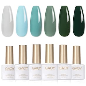 GAOY Conjunto de esmalte de gel verde, 6 cores, verde floresta escura, azul, cinza, kit de esmalte de cura UV para salão de beleza e arte de unhas, faça você mesmo em casa - Polimento de gel brilhante: aplique a camada superior de gel para um acabamento elegante e brilhante; ou aplique a camada superior fosca para acabamento de veludo de inverno. - O pacote inclui: 6 cores de esmalte de gel de 7,3 ml cada. Conjunto básico de unhas de gel para desfrutar da arte das unhas no conforto da sua própria casa! - Fácil de usar: Cure com luz UV por 60s até secar completamente. - Longa duração: até 4 semanas se aplicada adequadamente camada de base e camada superior. - Livre de tóxicos: menor odor em comparação com o esmalte tradicional. Todos os ingredientes estão em estrita conformidade com a FD&C Act e certificação SGS.