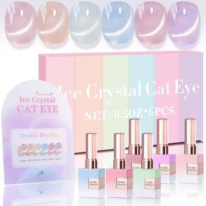 Double Rhythm Conjunto de 6 esmaltes de unhas em gel Cat Eye da mesma cor, frasco de 14,2 g, glitter brilhante com ímã, holográfico, refletivo, magnético, UV, kit em casa (prata, nude, rosa, azul, roxo-T6-28) - 6 peças de esmalte de gel da mesma cor: 6 peças de esmalte de gel de 15 ml para todas as estações, virá com amostras de cores. Este kit de esmalte de gel precisa ser curado sob lâmpada UV ou LED por 60-120s. Deve ser aplicado com gel base e top coat. Agite a garrafa ou aqueça-a com água quente antes de usar, para obter um efeito melhor. - Não tóxico e natural: este kit de esmalte de gel brilhante saudável é feito de 9 ingredientes livres de toxinas, o que o torna seguro e tem baixo odor. Com boa tenacidade e altamente pigmentado, o material de gel premium traz a você um acabamento brilhante e aparência suave e cobertura impecável. - Fácil aplicação para iniciantes: este conjunto de esmaltes de gel com glitter precisa ser curado sob lâmpada de LED para unhas. Elas precisam ser curadas sob lâmpada UV ou LED por 60-120s. Agite a garrafa ou aqueça-a com água quente antes de usar especialmente em climas frios, para obter um efeito melhor. - Aproveite a arte de unhas e economize dinheiro: bonitas atraem a atenção em qualquer ocasião, você pode projetar suas próprias unhas e compartilhá-las com suas irmãs, filha e mãe em casa. Presente perfeito para aniversário, feriado, aniversário, Natal, Dia dos Namorados, presente de Dia das Mães. - Aviso: pode causar uma reação alérgica por contato com a pele. Leia as instruções de uso cuidadosamente. Formulado profissionalmente e utilizado apenas para unhas. Evite contato com olhos, boca e pele. Em caso de contato com eles, enxágue imediatamente com água. Se houver algum incidente, com o médico imediatamente. Pare de usar o produto se houver vermelhidão e coceira. Mantenha fora do alcance das crianças.