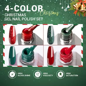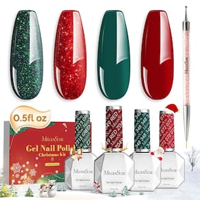 MelodySusie Conjunto de esmalte de gel de Natal de 15 ml: Natal 4 cores verde e vermelho esmalte de gel unhas de imersão UV LED conjunto de esmalte de gel de Natal presentes para mulheres meninas arte de unhas salão de manicure DIY design de unhas - PRESENTE DE NATAL PARA MULHERES: Este conjunto de esmalte de gel de Natal vem em uma variedade de cores brilhantes, o que é perfeito para manicure de férias. É bonito, prático e leve, adequado para dar de presente e autouso. Uma escolha perfeita para presentes de Natal. - CURA COM LÂMPADA DE UNHA LED UV: Este é um esmalte de gel UV para unhas, que deve ser utilizado com uma lâmpada de unhas UV. Ao usar este produto, você também precisa usar uma camada de base e uma camada superior (vendida separadamente). Tempo médio de cura da luz UV LED 90-120 segundos. Com aplicação adequada, dura pelo menos 3 semanas. - Aplicação suave e fácil: Este esmalte de gel aplica-se suavemente sem riscos e pode ser rapidamente autonivelado. Seu pincel é ergonômico e oferece cobertura suave, o que não é apenas adequado para salões de unhas profissionais, mas também adequado para iniciantes. Faça sua própria manicure facilmente. - Fórmula premium e durável: nosso esmalte de gel é cuidadosamente trabalhado para alcançar um efeito de manicure altamente saturado e de alto brilho que dura até 21 dias ou mais quando utilizado corretamente. A fórmula também se concentra em aumentar a durabilidade, garantindo que suas unhas permaneçam bonitas durante suas atividades diárias. - Segurança em primeiro lugar: pode causar uma reação alérgica por contato com a pele em casos raros. Faça um teste antes de usá-lo para verificar qualquer reação. Pare de usar imediatamente uma vez se sentindo desconfortável. Evite o contato do esmalte de gel com os olhos, boca e pele. Se esse fenômeno ocorrer, lave imediatamente com água. Se você não se sentir bem, com o médico imediatamente. Mantenha fora do alcance das crianças. Qualquer problema, !